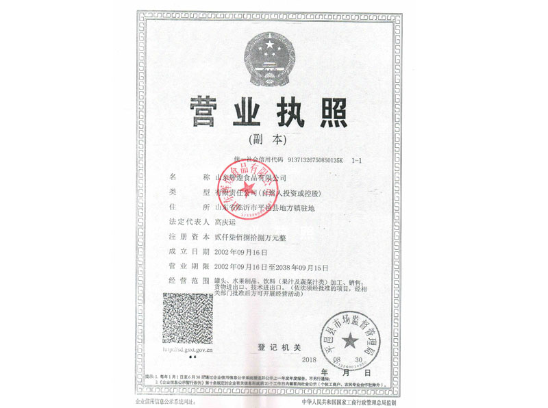 公司技術先進,裝備優良,建有市級企業技術中心及臨沂市“果醬及水果罐頭加工工程實驗室“,2021年被認定為”山東省‘專精特新’中小企業“。產品在占領國內市場的同時,遠銷歐、美、日、俄、蒙古等國家和地區。