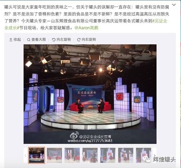 20141223日山東輝煌食品有限公司董事長高慶運先生,作為罐頭行業的專家, 應邀參加CCTV“見證企業成長”欄目,為消費者解讀罐頭